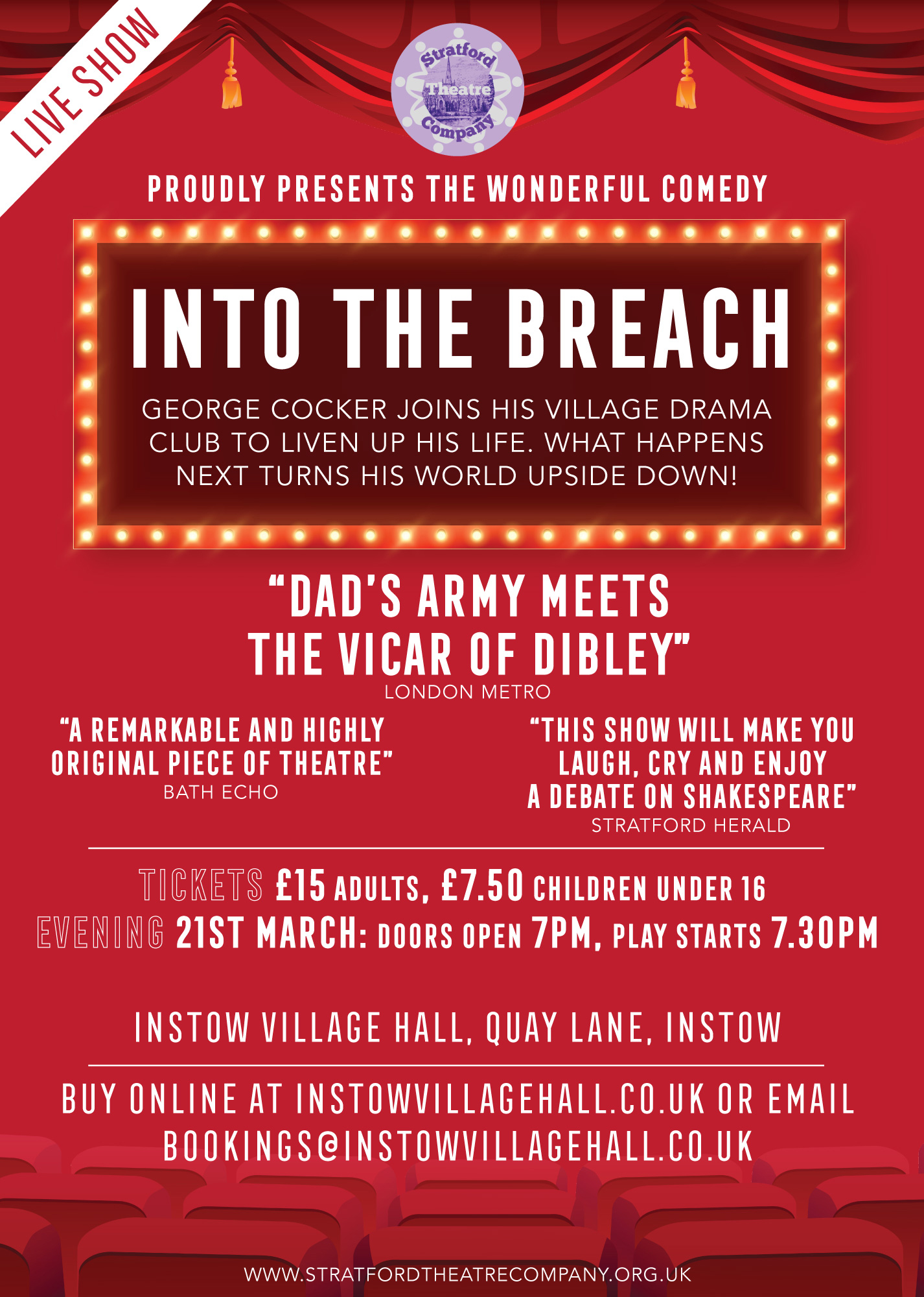 Evening – 21st March: Doors open 7pm, play starts 7.30pm